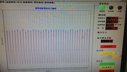 2、本灭火器筒体试验机控制系统由计算机操作台、试压泵及远程控制阀组等组成,可一次性完成实验。并自动得出试验过程中受检干粉灭火器筒体的屈服值、爆破压力值、爆破全过程涉水量、容积变形率、屈服变形量、爆破变形量、整个实验过程的时长等数据,并同时绘制出被试瓶压力-进水量关系曲线图、压力-时间关系曲线图及进水量-时间关系曲线图,通过打印机打印试压曲线,可以随时调取历史文档。根据客户提供表头,进行自动填写并可进行方便修改。控制软件功能根据GB4351-2007手提式干粉灭火器其中水压试验及爆破标准设计,并增加了灭火器压力交变试验功能。