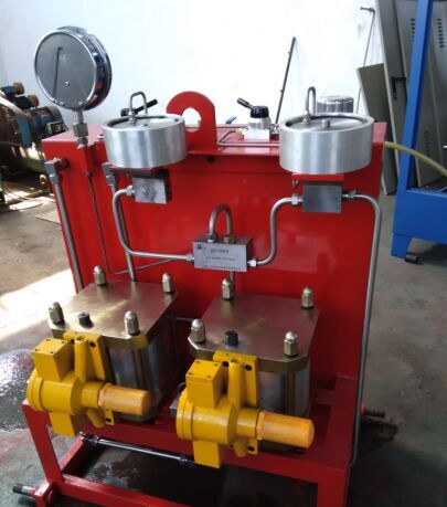 高压气动试压泵有防爆、输山压力可调、升压速度可控、体积小、重量轻、操作简单、性能可靠、适用范同广等特点。它特别适用于油田钻采工程的防喷设备、阀门、管道、连接件、压力容器等受压设备的高压和超高压试压检验。同时也适合科研、检验部门作检测工具。 气动试压泵主要用于石油化工工程的防喷器、阀门、管道、锅炉等一切承压容器进行液体试压检测。