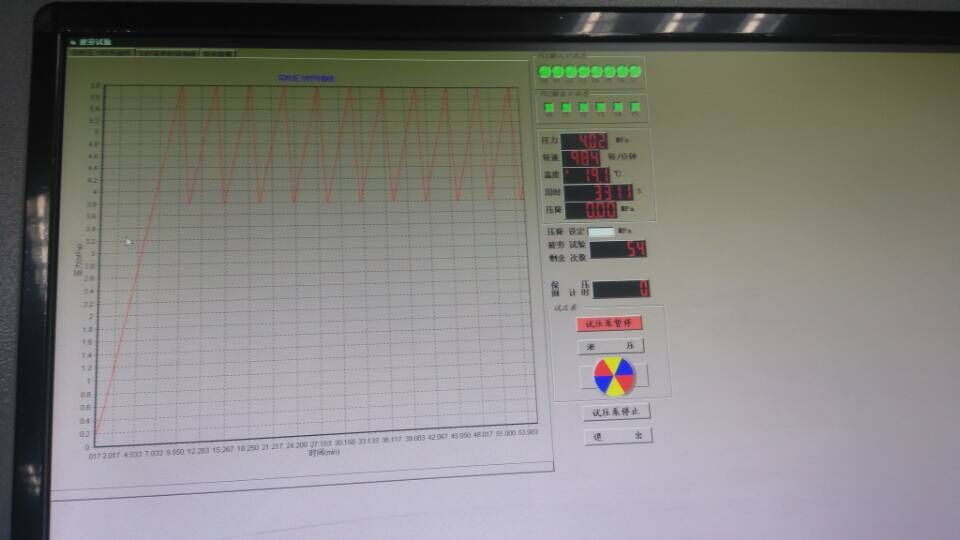 4、系统压力无级调节,靠计算机软件控制;试压泵本身的一些硬件功能包括:“开始”、“暂停”、“卸压”、“手动调压”等;
