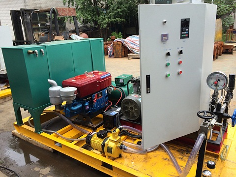 技术参数及配置:最高工作压力110Mpa、流量1500L/h、功率55Kw、普通电机驱动,高压泵配前置泵及过滤装置,配0.8m3内不锈钢水箱(含进出水管路、检修阀门及排水阀门等)。