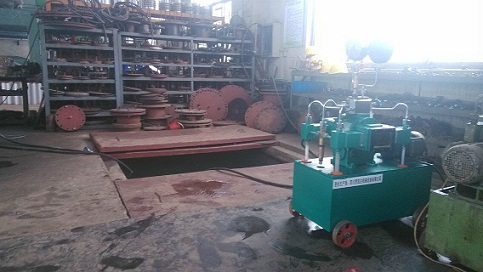 ③当泵的排出压力达到或接近要求压力值时,即应停机,关闭截止阀后,打开放水阀,使泵与被测试容器隔断,被测试容器处于保压状态。如被试容器不需保压,停机即可,不需关闭截止阀。