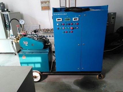 3、高压电动试压泵,(又称高压电动打压泵)具有“三化”程度高、运用寿命长、功用安稳、操作便当、移动灵敏、重量轻等利益,供各类压力容器、管道、阀门和蒸气锅炉等作水压试验和室中获得高压、液体等,在试压的初始时期具有较大流量,能敏捷充液和升压,以缩短试验时间。当压力超越0.6Mpa后,为使试压进程能较平稳而缓慢地进行,则流量主动减少,此泵在高低压时有两种流量,并能主动变换,凡在额外排出压力以下,可进行任意数值的水压试验。
